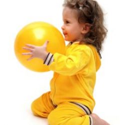 Cute,Little,Girl,In,Yellow,Playing,With,Ball